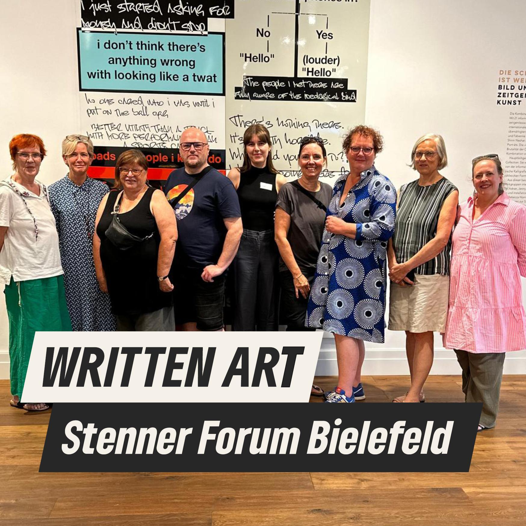 Kurz vor knapp haben wir Grünen aus „Bieleford“ das Stenner Forum besucht, um die Ausstellung »Die Schrift ist weiblich. Bild und Text in der internationalen Kunst« zu erkunden. Bei einer inspirierenden „Art after Work“-Führung erhielten wir spannende Einblicke in das Leben und die Werke von Künstlerinnen, die sich mit Schrift, Text und Bild auseinandersetzen. Die sehr unterschiedlichen Arbeiten verbindet die Faszination für das Medium Schrift und die Tatsache, wie der Titel verrät, das Geschlecht. Das ist bemerkenswert, denn Frauen sind in der Kunst noch immer deutlich unterrepräsentiert. Schade und immer noch unverständlich, dass das Museum, was diesem Ungleichgewicht nicht nur mit dieser Ausstellung entgegen wirkt, bald schließen muss.